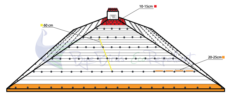 Lugares donde se posan durante el día, áreas de descanso o de búsqueda de fuente de alimento, colocar 16-20g de Byebirds a una distancia de 20cm.