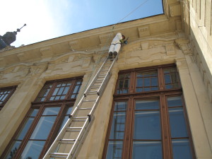 Como se muestra en las siguientes fotografías, ByeBirds Ivory White se colocó en la fachada principal de los baños, siendo apenas perceptible al ojo humano debido a la discreción de ByeBirds. El trabajo fue realizado por escaladores, que se descolgaron por el edificio y utilizaron escaleras al mismo tiempo para realizar el trabajo. Una vez terminados los trabajos, una pareja de palomas, un macho y una hembra, se acercaron a una ventana sin poder posarse debido a la presencia de ByeBirds.