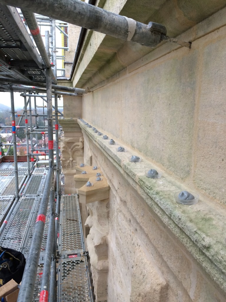 Este trabajo se realizó durante el mantenimiento de las fachadas de la iglesia en noviembre de 2014. ByeBirds se aplicó en dos de las cuatro fachadas del campanario.
